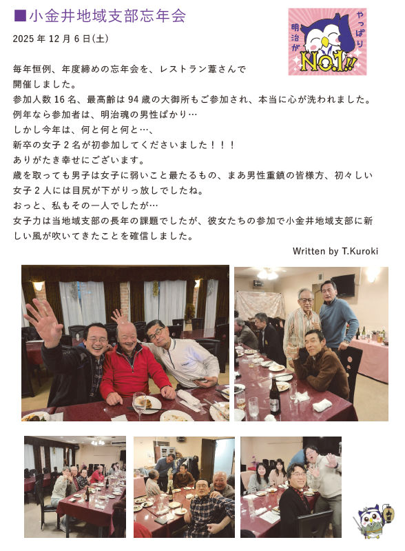 ゲーム終了後、場所を変え近場(武蔵小金井屈指の焼き鳥繁盛店)で表彰式を兼ね
