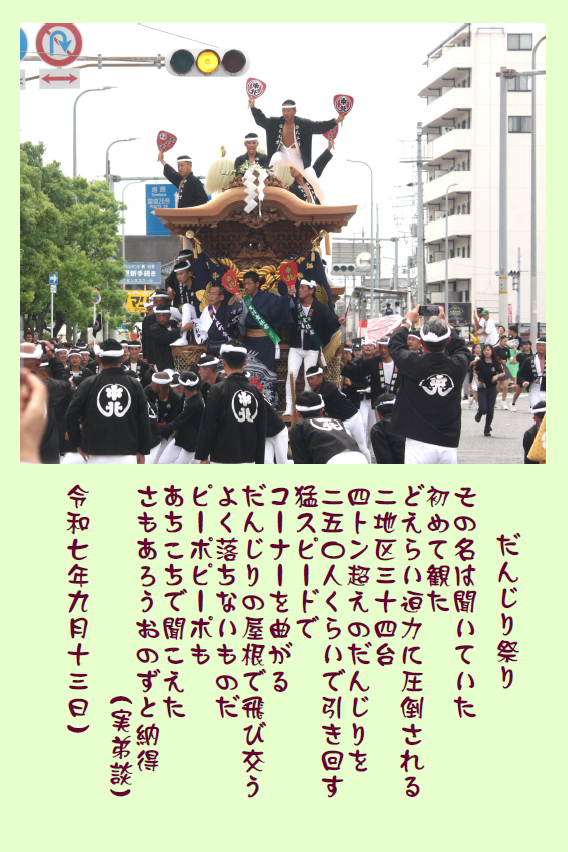 | ■「岸和田だんじり祭り」 江戸時代の中期(1703年)、和田藩主 岡部 長泰(おかべ ながやす)公が、 京都伏見稲荷を城内三の丸に勧請して、五穀豊穣(米、麦、豆、あわ、ひえ) を祈願して稲荷祭を行なったことから始まった岸和田だんじり祭。 300年以上続く歴史的な祭りです。 |